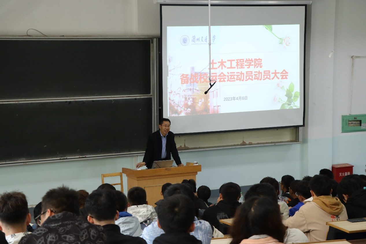 大会伊始,学院党委副书记副院长林梦凯做动员讲话,他向参训人员强调了校运动会训练的规章制度及奖惩办法。希望同学们能够严于律己、奋力拼搏,积极备战校运动会,刻苦训练、力争上游,在即将到来的校运动会比赛中取得优异成绩。他表示,校运动会是对同学们身体素质和心理素质的双重检测,也是土木学子展示自身风采的一个机会,希望所有运动员都能发扬团队精神和拼搏精神,赛出风格,赛出水平,展现土木学子奋勇当先,坚持不懈的青春风采。