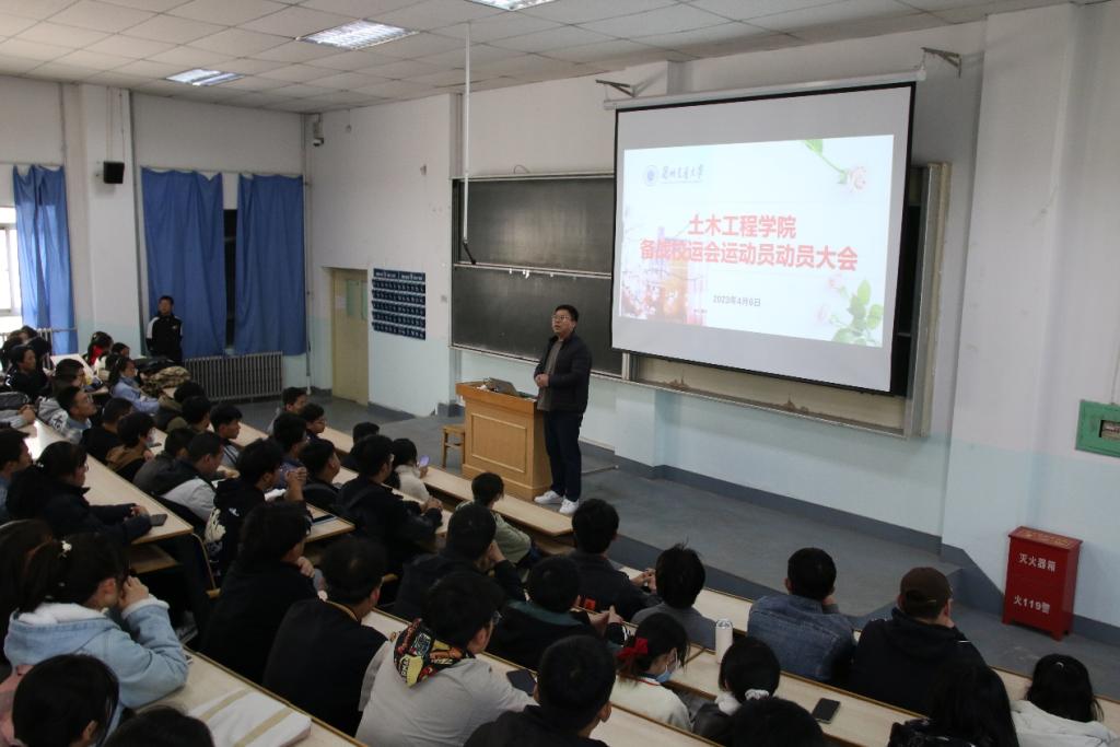 为做好我院运动健儿备战校运动会的准备工作,充分调动学生参与体育运动的积极性,进一步推动土木学子体育竞技水平的提高,近日,土木工程学院于七教2404举行了土木工程学院备战校运会运动员动员大会,学院党委副书记副院长林梦凯、团委书记胡渊、研究生辅导员郭海东、22级辅导员王泽珺老师、全体运动员参会。