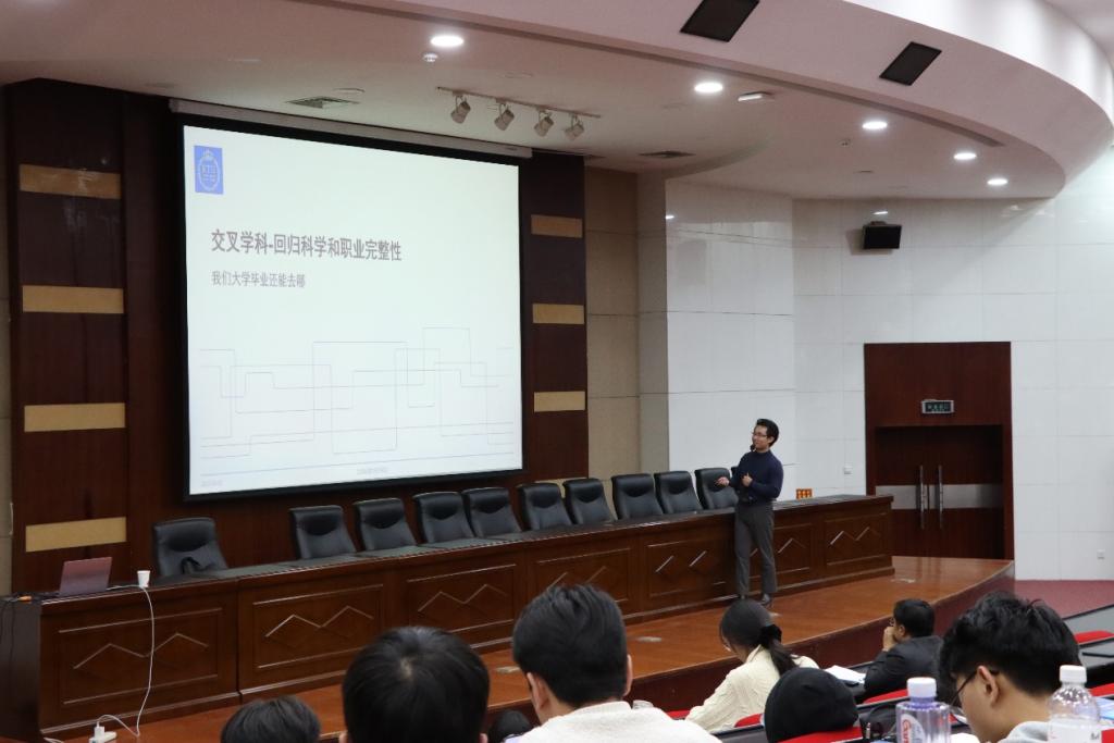 会后,同学们积极提问,孟博文校友对同学们的普遍关心的英语学习、出国留学申请、课程学习与职业选择等,进行了详细解答,引发了同学们的深入讨论和思考,现场交流气氛热烈。通过本次讲座,同学们受益匪浅,对于如何在社会科学技术高速发展的过程中勇敢突破单一专业、学科的限制,通过交叉学科提升自己的科研及职业竞争力,了解交叉学科对社会数字化转型与科学发展范式深刻变革的意义,增强专业自信,开拓视野,面向国际,具有较好的启发意义。