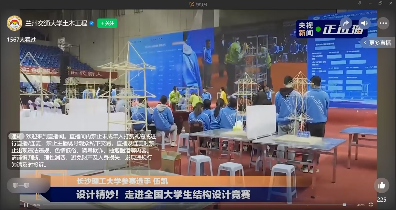 此次直播活动旨在丰富校园学术氛围,培养青年学子创新思维,提高团队协作和工程实践能力,增强学生对于工程结构设计的本领,提升关于计算机建模能力、多荷载工况组合下的结构优化分析计算能力、复杂空间节点设计安装能力,鼓励学生将理论知识勇于实践,同时为我院学生参加结构设计比赛积累经验,进一步推进高校实践教育教学改革,实现“以赛促学、以赛促教、以赛促建、以赛促改”,提高人才培养质量。