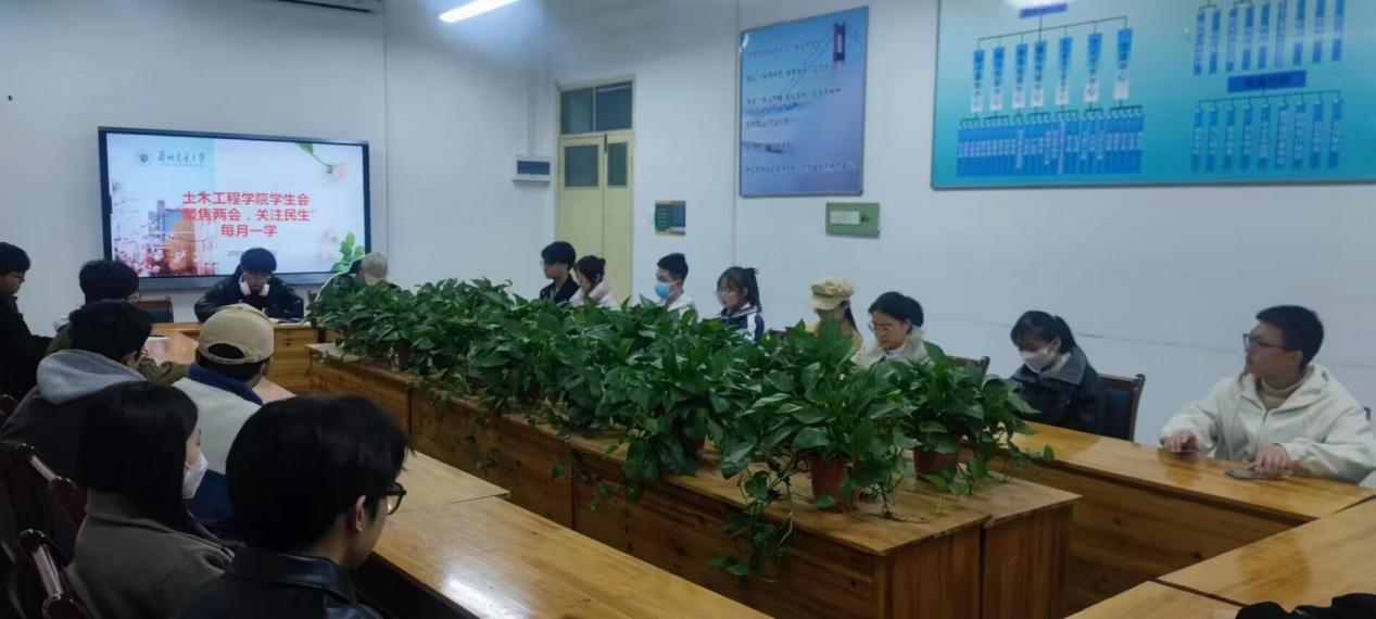 2023年是全面贯彻落实党的二十大精神的开局之年,也是全面建设社会主义现代化强国的重要节点。为深入学习贯彻党的二十大精神,进一步加强学生会组织建设,提升学生会工作人员的理论水平和工作能力,提高全心全意服务同学们的意识。近日,我院学生会召开了每周例会进行工作部署与“聚焦两会,关注民生”每月一学。各部门积极响应号召,在土木楼112会议室开展了学习活动。学生会全体成员认真学习,深入思考,领悟两会精神,分享学习心得。