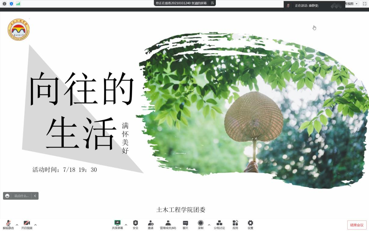 为推进校园文化建设和学院文化育人工作,丰富大学生课余生活,挖掘兴趣特长,生动展示土木学子青春飞扬的校园风貌,积极打造校园活动品牌。7月8日,土木工程学院举办了线上“向往的生活”家乡风俗文化分享会。