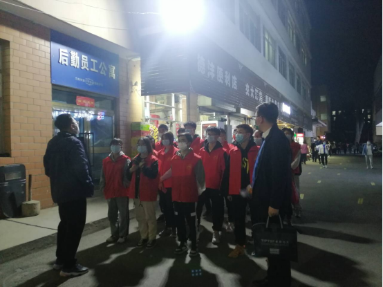 3月10日晚上10点,为做好校外志愿服务工作,使志愿者熟悉工作内容和流程,土木工程学院党委副书记副院长林梦凯、团委书记胡渊、学工办主任高建强,带领学院“校外秩序墙志愿服务队”成员,在做好自我防护的同时,积极开展校园闭环管理值班演练,志愿者们将弘扬和践行志愿者精神融入抗“疫”工作中,为打赢疫情防控阻击战贡献青春力量。
