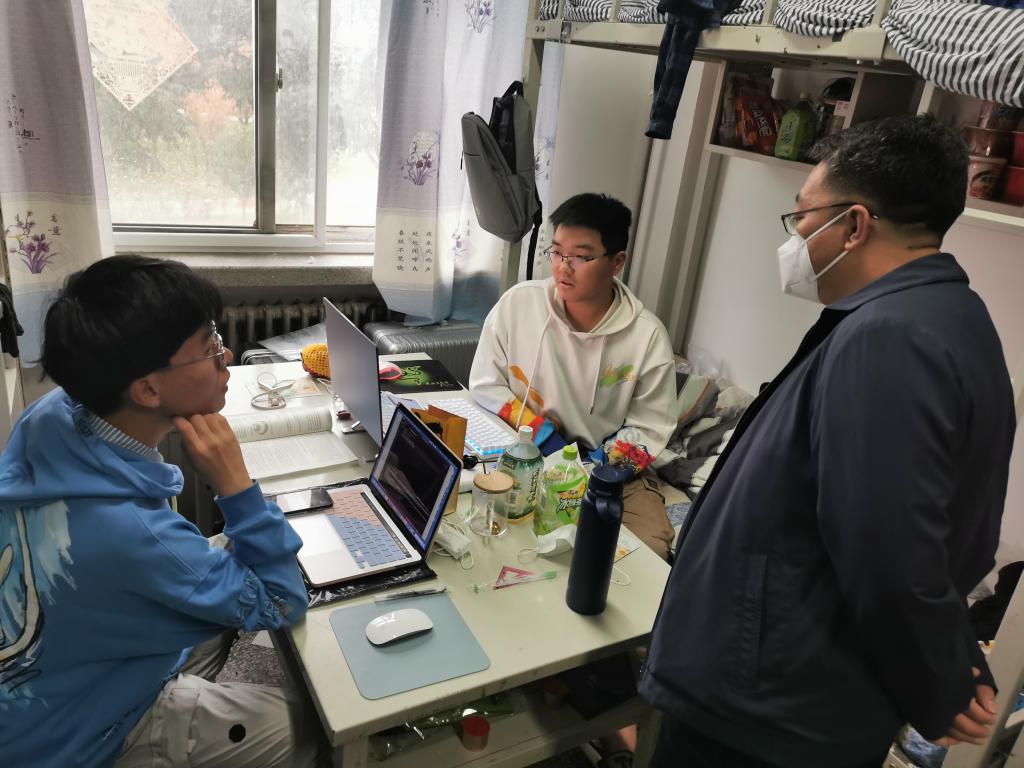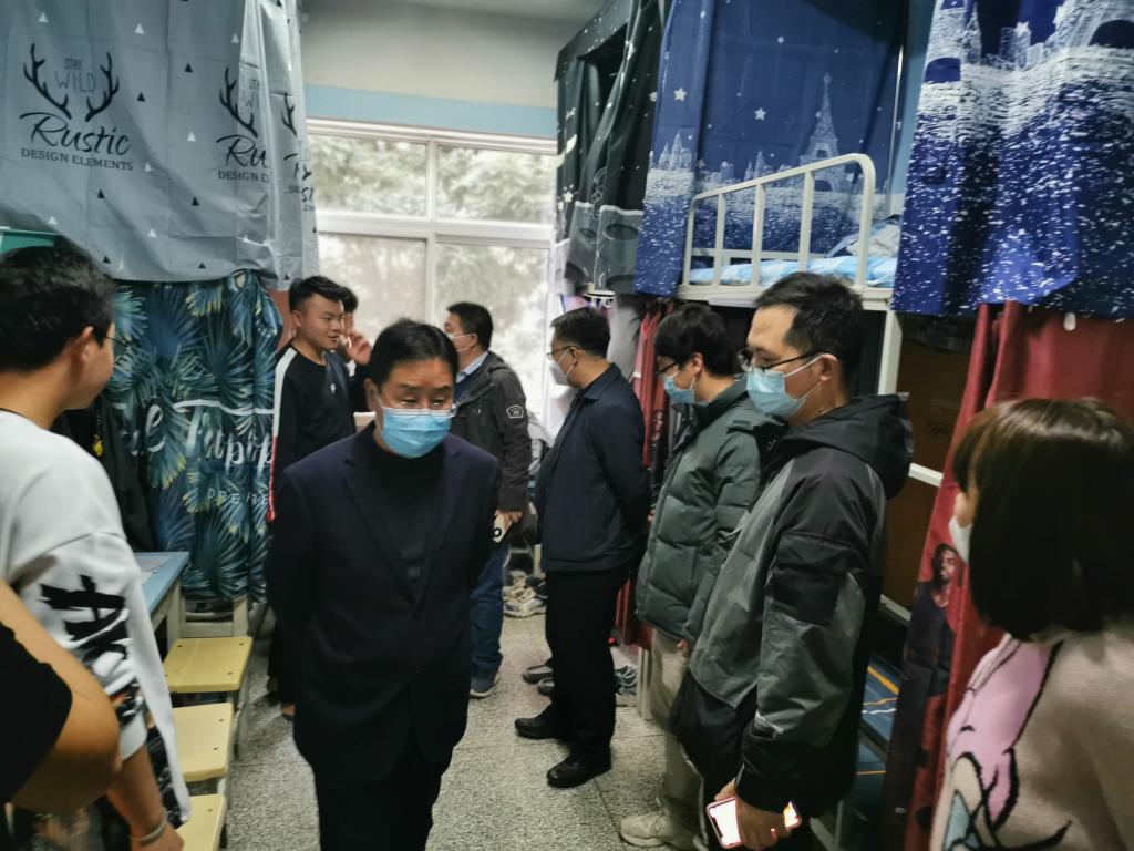 10月25日下午,学院党委书记周涛、党委副书记副院长林梦凯、副院长韩峰带领学院学工办主任和辅导员深入宿舍,开展网课巡学巡查和学生宿舍防疫督导,对部分班级线上上课情况、宿舍防疫、卫生状况进行全面细致的督导检查。