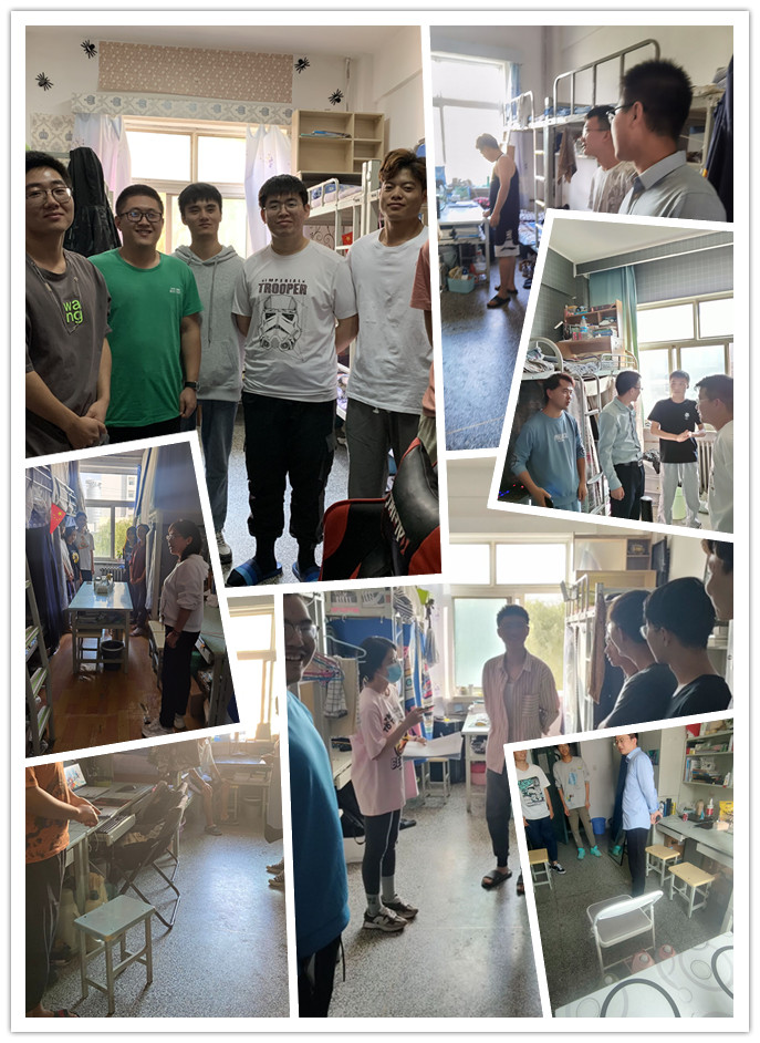 9月30日下午5:30,学院党委副书记副院长林梦凯带领全体辅导员和班主任深入宿舍,督导检查,了解学生宿舍安全、宿舍卫生以及有无私自离校离兰情况。在走访学生宿舍过程中,班主任和辅导员亲切地同学生交谈,了解同学们的生活状况、学习适应情况、国庆假期安排等,解答学生提问。所有学生人员提醒学生国庆假期提高自我保护意识,注意安全,外出锁好门窗,防火、防盗、防骗。辅导员和班主任检查宿舍后反馈,大部分宿舍卫生整体情况良好,能做到及时清洁打扫、做到通风、叠被,保持宿舍整洁,学生学习氛围良好,已叮嘱学生用水用电和安全问题。