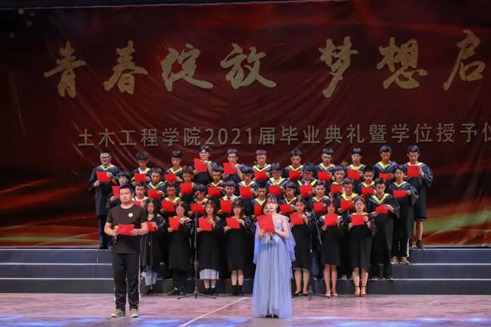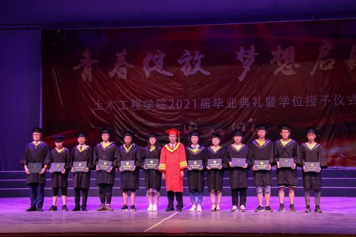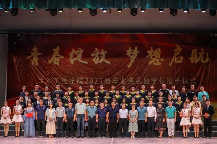 鲜花怒放桃李芬芳,歌舞飞扬不改离殇。6月23日,土木工程学院2021届“青春绽放,梦想启航”毕业典礼在大礼堂成功举办。土木工程学院院长虞庐松、党委书记周涛、副院长韩峰、副院长梁庆国、党委副书记副院长荀新文、副院长鲍学英、副院长蒋代军、学院各系、科室负责人和相关老师以及学生家长代表参加了典礼。