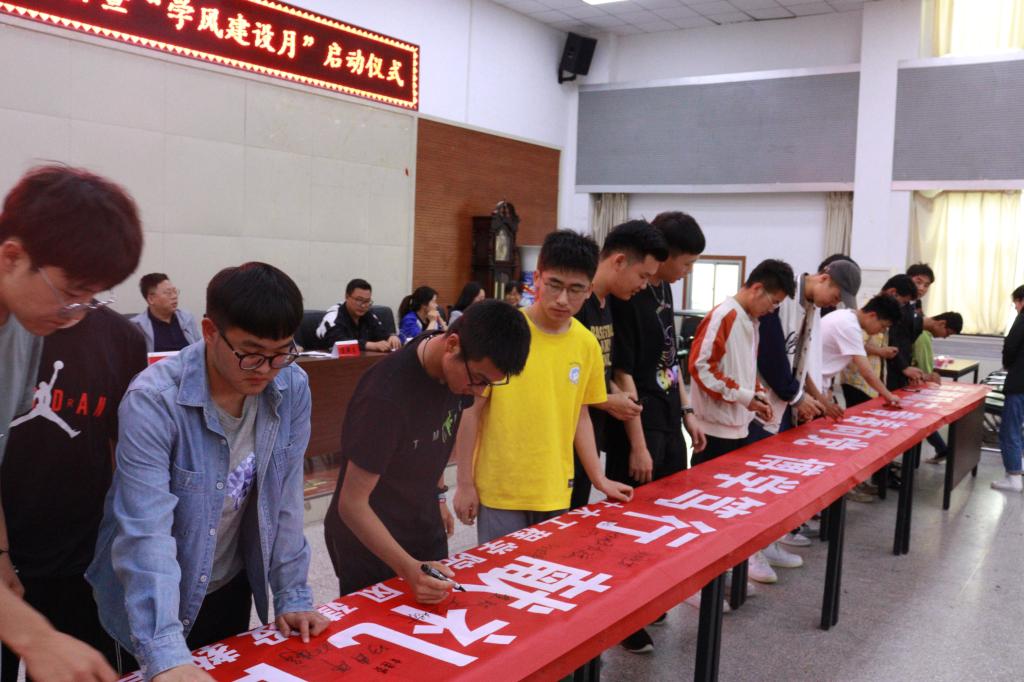 学生工作办公室主任胡渊宣读了《土木工程学院学风建设月活动实施方案》,从指导思想、任务目标、主要内容、工作要求等方面进行了详细的安排部署。会上,还举行了“尚德励志、青春向党,博学笃行、献礼百年”学风建设月签名仪式。