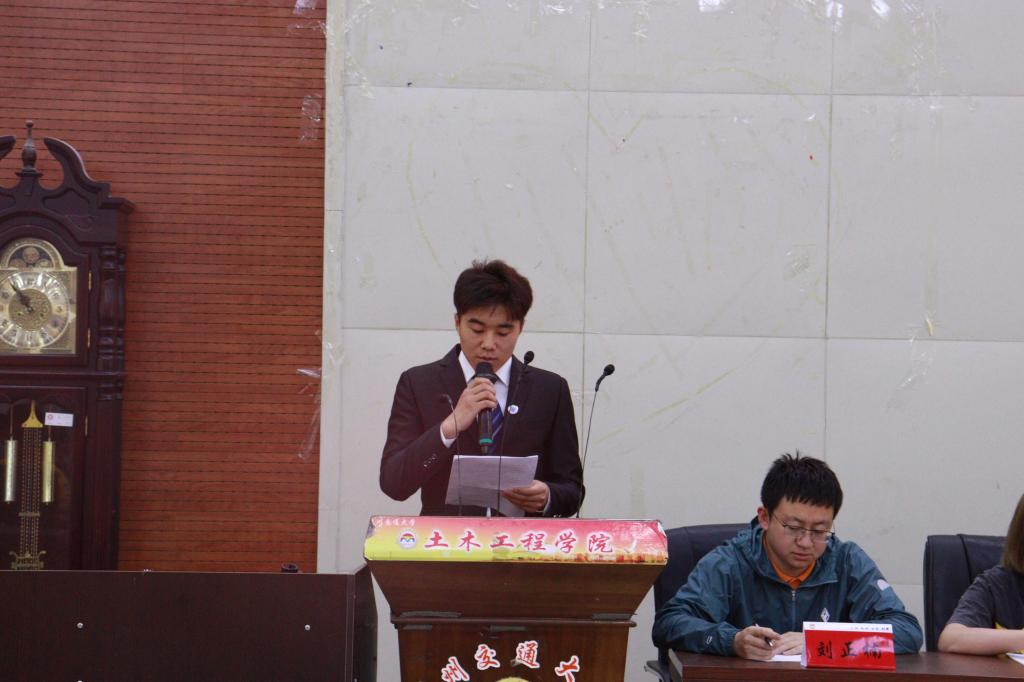 学生会主席陈辅亮宣读了《土木工程学院学风建设月倡议书》,从树立远大目标,成就理想人生;共讲文明礼仪,和谐师生关系;建设优良学风,自觉从我做起;共享优质课堂,严肃课堂纪律;端正学习动机,严肃考风考纪;共筑健康生活,营造和谐校园等六个方面对全体学生提出了倡议。