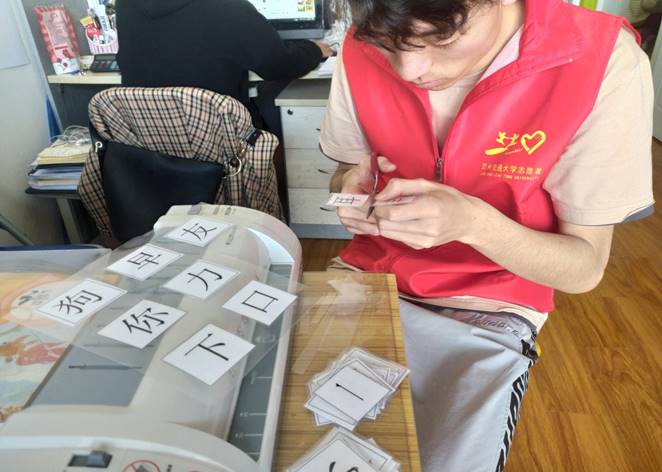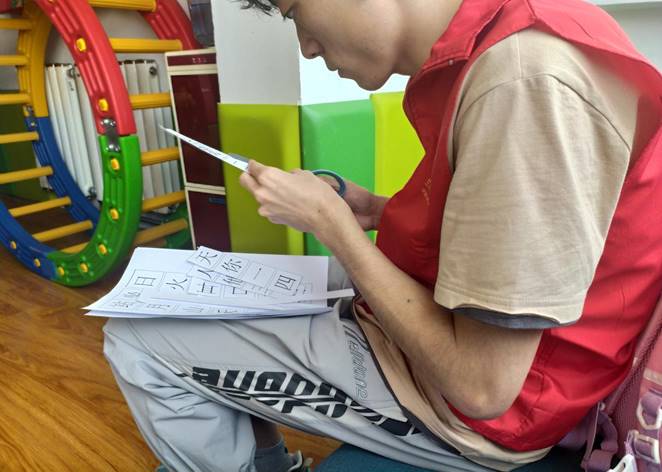 第一小组负责帮助老师进行儿童们的康复训练,另一个小组则为孩子们设计下一次的作业。虽然都是一些很简单的事情,但志愿者们却做的非常认真,充分体现了志愿服务精神和工作热情。下午17:00,随着孩子们下课铃声的响起,此次活动也接近了尾声,所有志愿集合拍照留念,本次活动圆满结束。