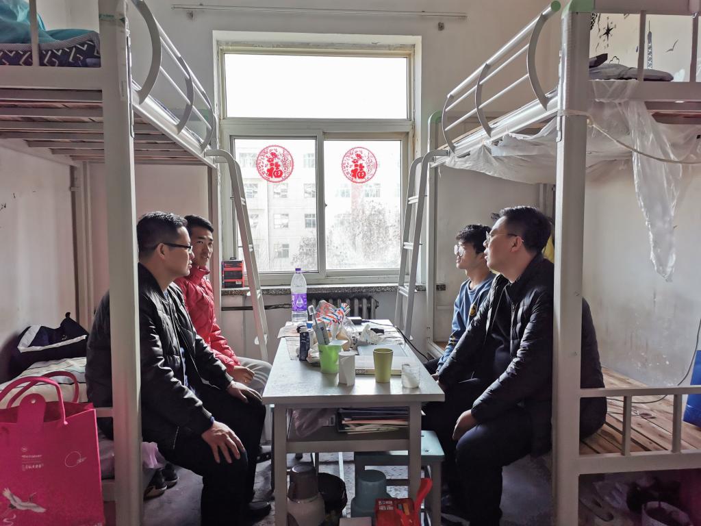 党委副书记副院长荀新文与每位留校学生亲切交流,关心问候了同学们的日常生活、学习情况和家里的疫情防控形势,表达了学院对于寒假留校学生的关心。叮嘱同学们注意安全、加强锻炼,并经常与家人联系,每天向家人、班主任、辅导员报送平安;也提醒大家留校期间严格遵守学校疫情防控要求,提高防范意识,做好科学防护,积极配合学校有关规定,合理安排好留校期间的学习和生活计划,为新学期开学提前做好准备,有困难随时与辅导员班主任联系。
