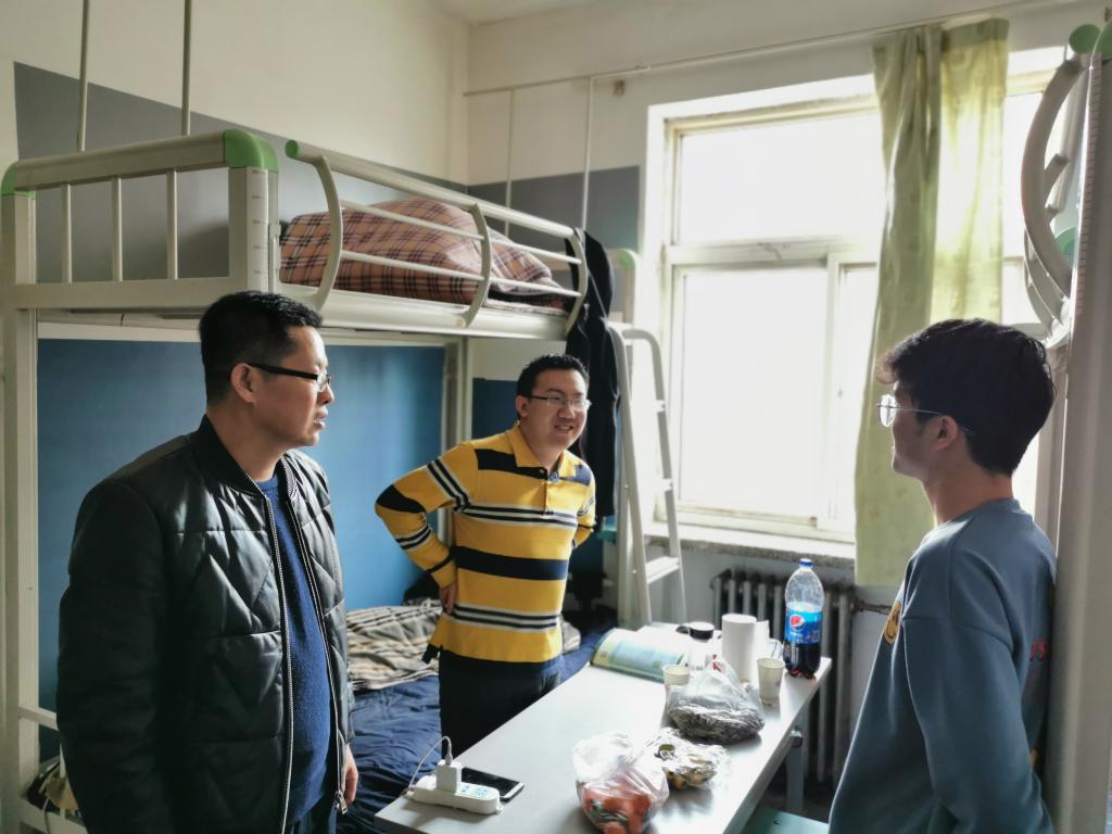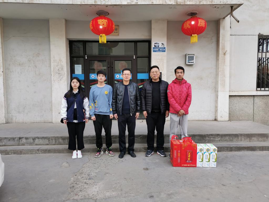 春晖渐近旧岁去,一元复始万象新。为贯彻落实“三全育人”理念,强化寒假期间学生教育管理工作,落实落细管理育人、服务育人,让学生切身体会到学院的温暖和老师的关心,2月5日下午,学院党委副书记副院长荀新文、学工办主任胡渊深入学生宿舍,看望慰问因疫情原因寒假留校学生,送上慰问品,并代表学院致以新春问候。