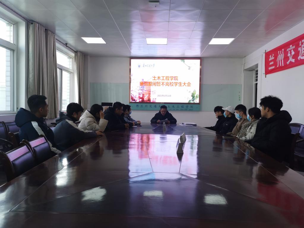 为做好2021年寒假期间暂不离校学生疫情防控和安全稳定工作,防止各种事故发生,确保暂不离校学生的身体健康和生命安全,1月11日上午10:00,学院在411会议室召开了暂不离校学生会议,党委副书记、副院长荀新文,学生工作办公室主任胡渊、年级辅导员何汉霞、洪妍妍、孙维宇、刘正楠参加了会议。