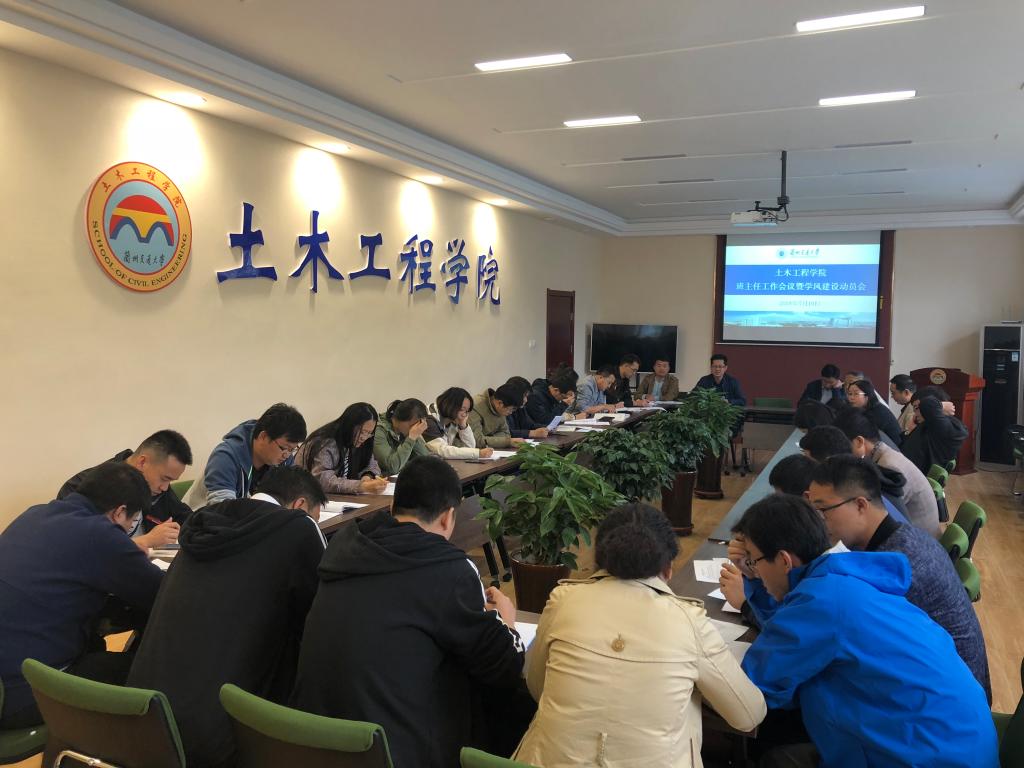 2018年5月10日下午,土木工程学院在三楼会议室召开了学院班主任工作会议暨学风建设动员会。学生工作办公室主任荀新文、院团委书记杜靚、各年级辅导员、全体班主任参加了会议。会议由荀新文主任主持。