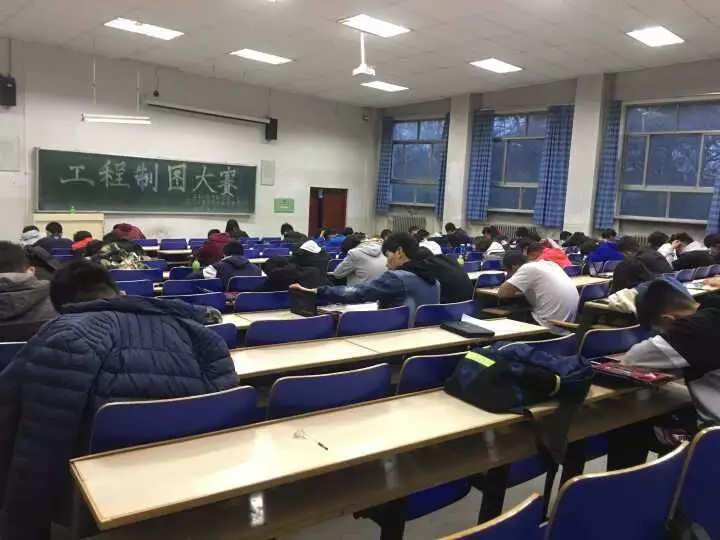本次比赛只有一次比赛机会,由参赛选手每人做同一套试卷,比赛过程中参赛选手不得使用电子类通信工具,参考书等,参赛选手之间不得交头接耳,左顾右盼,抄袭他人答案,商量作答,一经发现扣除5分,若行为严重者取消比赛资格。若有疑问可以询问在场的工作人员。在考试结束后由科技创新中心派专人批改试卷,并由分数高低进行排序,取前八名同学颁发证书,给予奖励。比赛试卷分为工程字的书写、填空题以及画图题,每位参赛选手不得与他人进行交流,要求单独完成考题,比赛现场竞争激烈,气氛活跃,参赛选手们时而低头沉思,时而奋笔疾书,用绘图工具在工图试卷上奉献智慧,挥洒汗水。