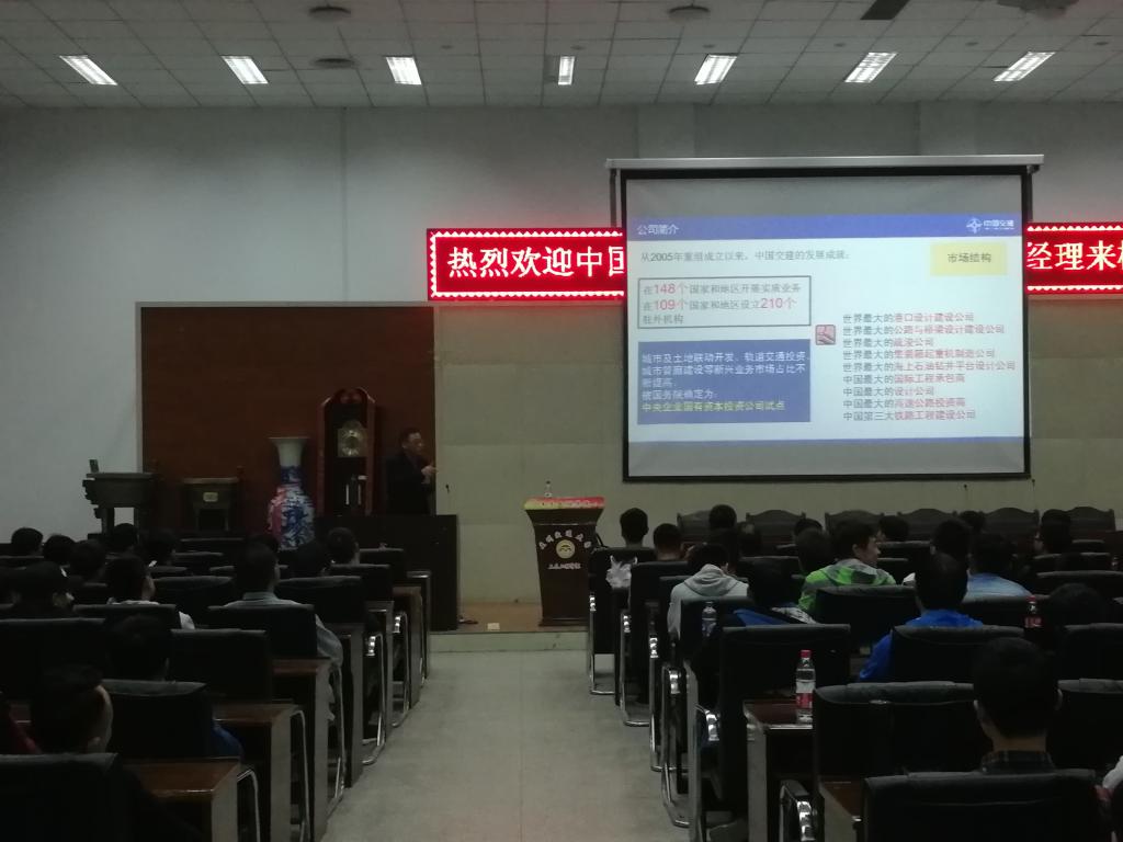 通过此次讲座,使2019届毕业生对中交企业文化、海外项目开发与管理及“十三五”发展战略有了深刻的认识,对当前就业形势有了准确的认知,使同学们时刻保持忧患意识,为同学们今后的学习生活和职业发展指明了方向。