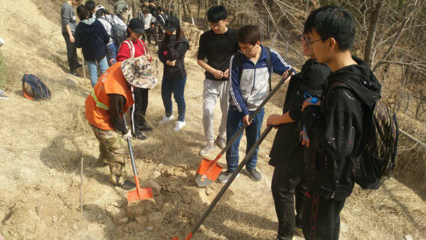 下午时分,同学们浩浩荡荡的上了山,来到植树地点,个个摩拳擦掌,跃跃欲试,还未等工作人员安排,就找空地挖好了树坑,惹得工作人员哭笑不得。随后,在工作人员的指导下,同学们认真学习,彼此合作,终于完成了树苗的栽种。体会到照顾树苗的不易和亲自栽种树苗的快乐,同学们纷纷拿出手机拍照发到网络,呼吁大家珍惜家园,保护地球。 之后,大家席地而坐,在休息的时间段玩起了游戏,分发自己带的零食,两班同学还相互赠送礼品留念,大家玩的不亦乐乎。最后,同学们排队下山,在地震博物馆前合照留念,记录这美好的一天。