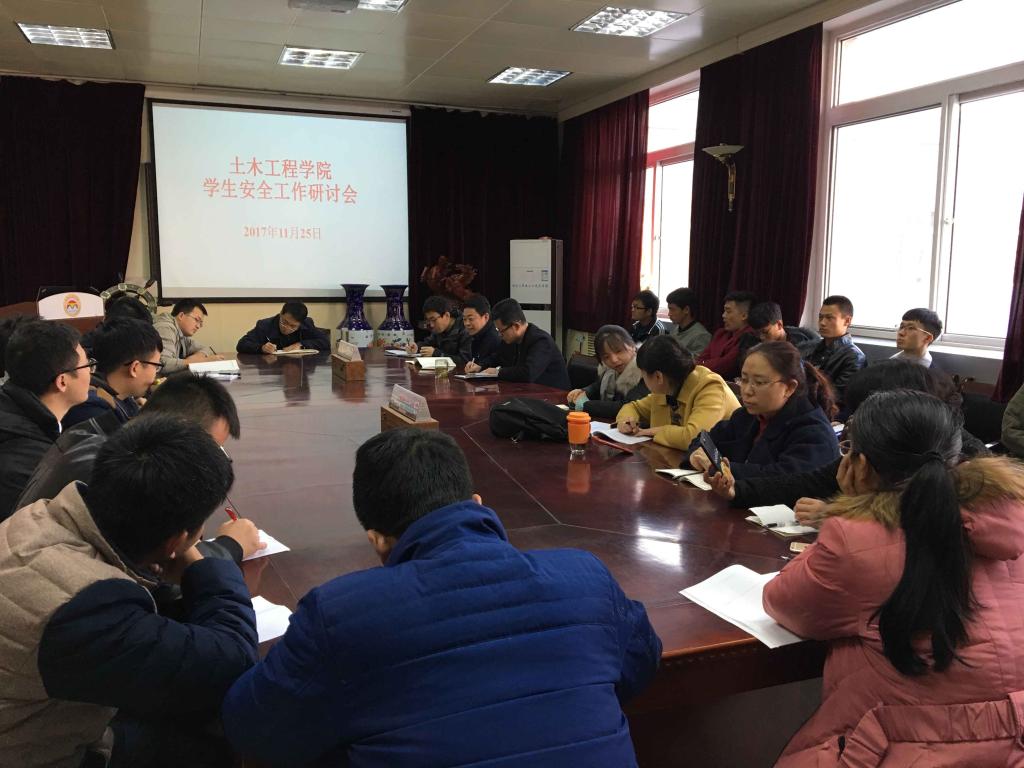 2017年11月25日下午,在土木工程学院四楼会议室召开了学院学生安全工作研讨会。学生工作办公室主任荀新文老师、年级辅导员、部分班主任、各年级学生干部代表40余人参加了会议。会议副院长周涛老师主持。