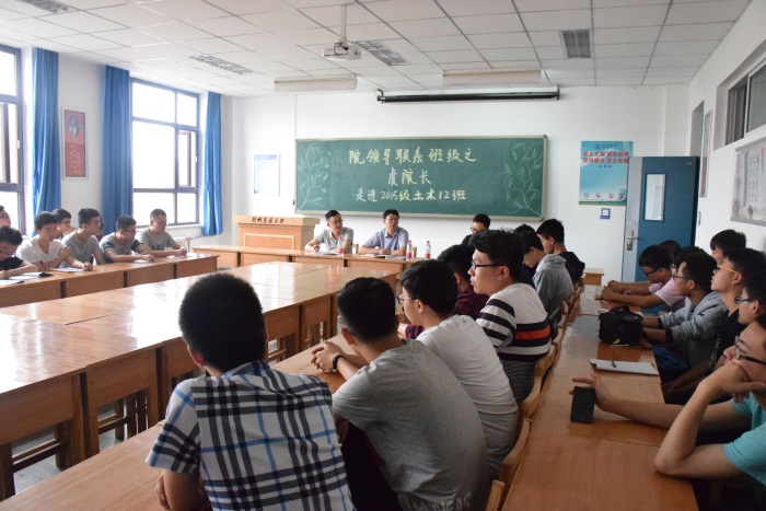 6月15号下午,土木工程学院土木1512班举办了“我与院长谈谈心”活动。邀请了土木工程学院院长虞庐松教授和辅导员胡渊参加了活动,活动由班主任孙寿榜老师的主持。