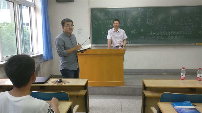 为了帮助土木1503班同学更好的认识到作为茅以升班一份子肩上所担负的重大使命,让同学们认识到自己目前学习方面的不足以及如何成为土木工程的卓越人才,蔺鹏臻副院长于2017年6月8日16:30在4教130教室为土木1503班全体同学召开了以“扎根桥梁建设,培养卓越人才”为主题恳谈会。