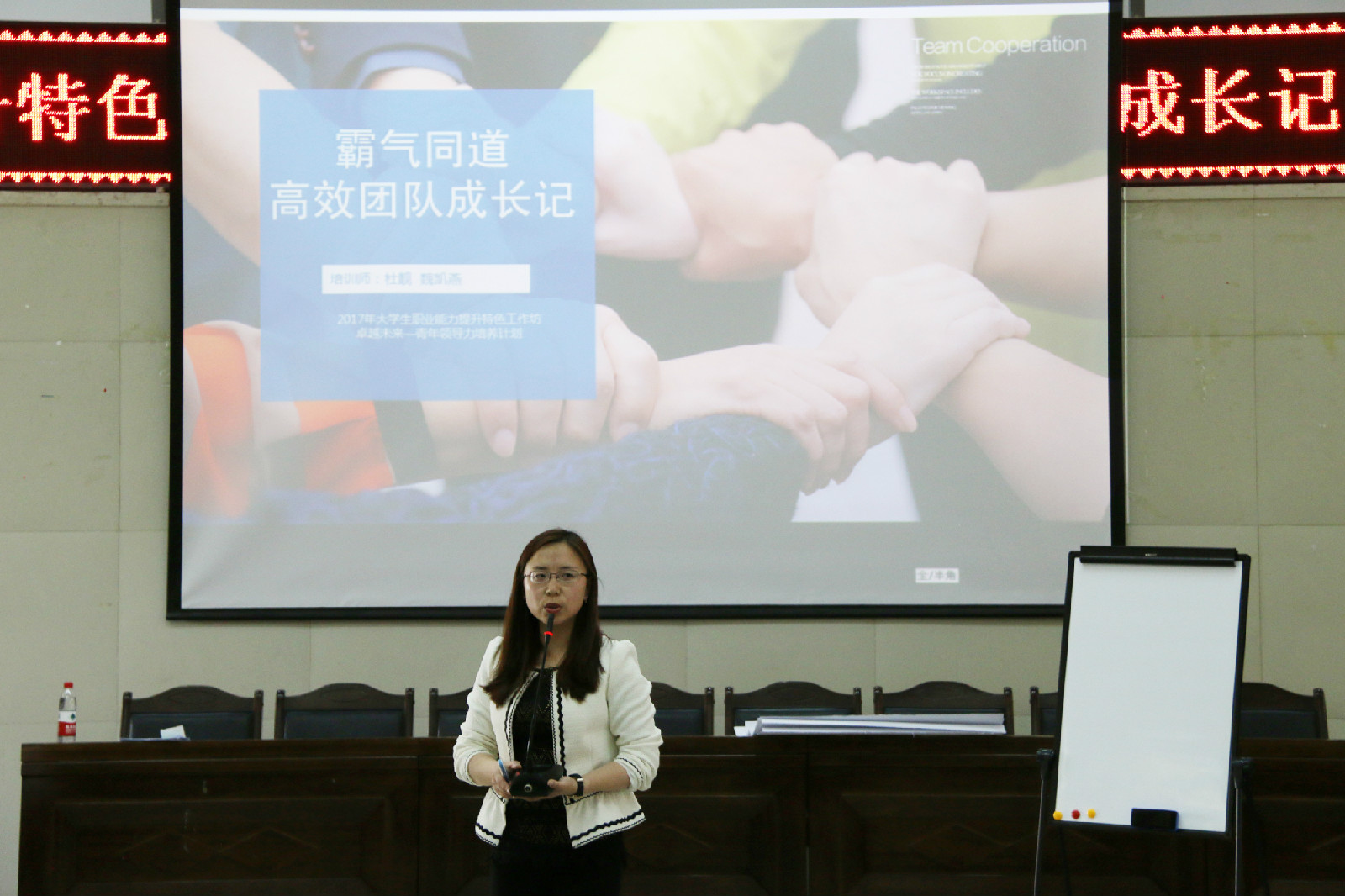 5月11日下午2:30,土木工程学院多功能厅迎来了一场别开生面的职业能力提升工作坊——“霸气同道:高效团队成长记”。旨在提升团队合作能力,及自己与团队的关系定位。本次工作坊由我院团委书记杜靓老师、招生就业处魏凯燕老师主讲,土木学院15级学生干部近40人参加。