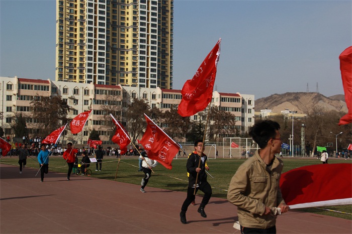 运动会的最后,是始终不变的班级跑旗活动。各班的同学手举班旗在赛场上飞驰,一个接着一个的经手传换,不仅仅是男生,土木院的女生也不甘示弱的奔跑着。让我们感受到了土木学子的青春活力,感受到了大家对班级深深的热爱。