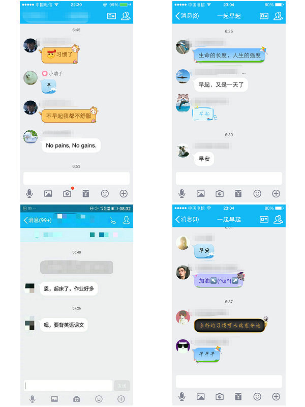 活动通过网上报名,共261名同学参加。活动共有三个项目,分别是早起、跑步、读书,既可以单独积分,也可以一起积分,通过QQ平台,小助手会记录参加者的实际情况,活动截止后小助手进行汇总,不同积分获得相应奖品。在懒癌大作战活动启动后,参与者每天早晨打卡,一天结束后对打卡内容完成度进行汇报,并分享心得。打卡有效的提高了同学们的兴趣和积极性,使早起、跑步、读书成为每天必做的事,截止至11月16日“懒癌大作战”活动结束,坚持打卡人数共48人。