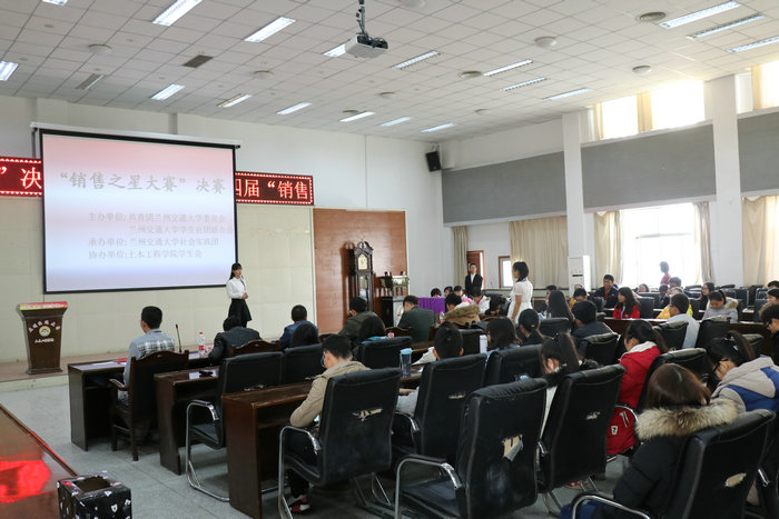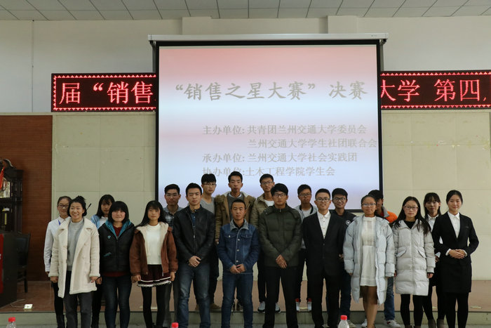 2016年11月26日上午,由兰州交通大学社会实践团举办的第四届“销售之星大赛”决赛在土木学院多功能厅举办。参加本次活动的嘉宾有社团联相关负责人、土木工程学院团学干部、社会实践团主席团。