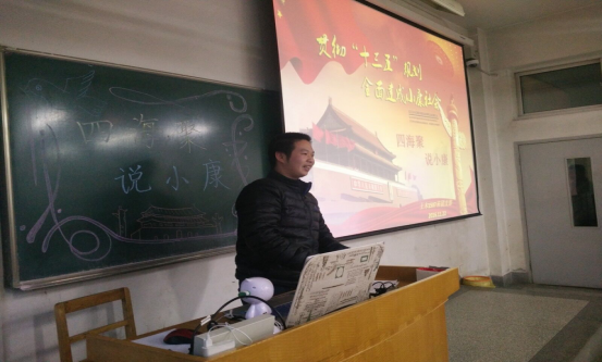 活动开始,各组的同学用自己制作的PPT展示了中国近年来的伟大发展,畅谈自己家乡的进步以及对未来美好的畅想。同学们的精彩演说和精致的PPT让这次团支部活动增色不少。同学们聚精会神的观看着每组的展示作品,不时的与讲台上演讲的同学进行互动,在小组展示结束后,嘉宾们对同学们的演讲进行了独到的点评。活动中场,由何冰航同学和马小瑞同学表演的相声《乡村面貌变变变》将本次活动的气氛带到了高潮,他们用独特的方式为大家诠释了自己心目中的小康。