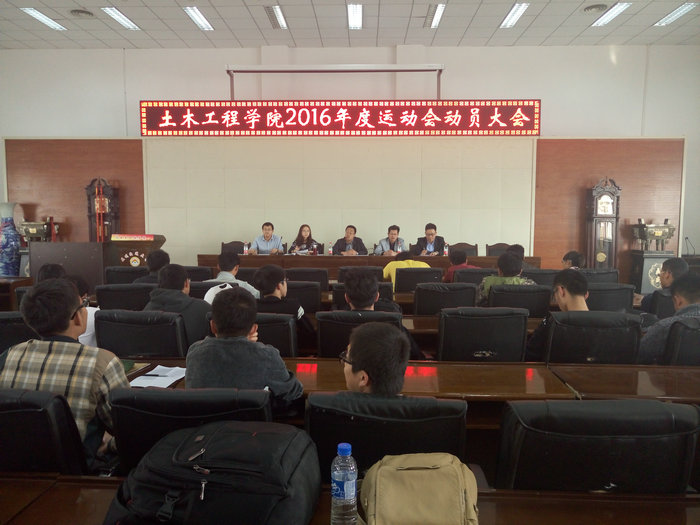 为迎接学校第四十八届田径运动会,充分调动运动员的积极性,同时保障训练期间各项服务工作有序进行。4月1日下午,土木工程学院运动会动员大会在土木院多功能厅顺利举行。上届运动会运动员、14、15级各班班长和拔河队员,以及学生会学生干部参加。副院长周涛、学工办主任荀新文、团委书记杜靓、辅导员代金鹏、胡渊出席会议。