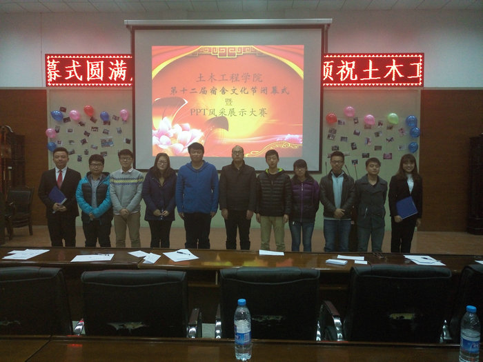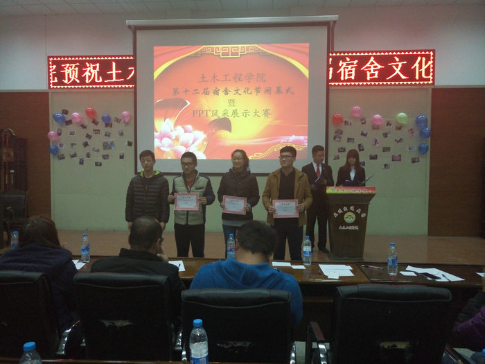 12月2日晚7:30,土木工程学院宿舍文化节闭幕式在新土木学院多功能厅如期进行。兰州百合医院代表、学生会主席团出席本次活动担任评委嘉宾。