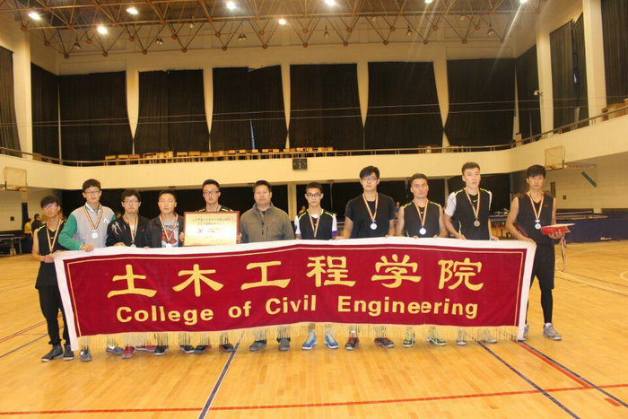 篮球赛上,我土木男儿凭着优秀的技术、强健的体魄、永不服输的精神以及团队的配合,一路高歌挺进。以61:33的绝对优势力压环境学院成功晋级四强,在半决赛中又以66:45的优势下力压交运学院成功晋级决赛。10月30日下午4点,在体育馆上演了激动人心的篮球决赛—土木学院对阵校体育部,经过几次的反超与被反超,起起落落,最终,我我院以75:78,3分之差憾负体育部。虽与冠军失之交臂,但其精神感染了在场所有观众,一波又一波呐喊、加油声此起彼伏。体育馆外寒风凛冽,却丝毫没有减弱大家的热情。