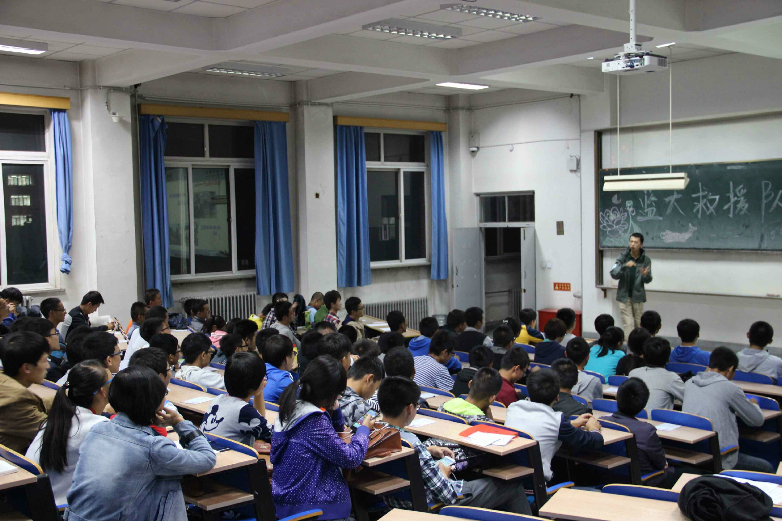 2015年9月23日,为增强大一新生安全防范意识和自我防护能力,土木青协联系民间救援组织“蓝天救援队”为大一新生开展了一堂安全知识讲座。此次讲座不仅为大家普及了众多自然灾害防范知识,而且通过实际演练操作增强了大家的自我救助能力。