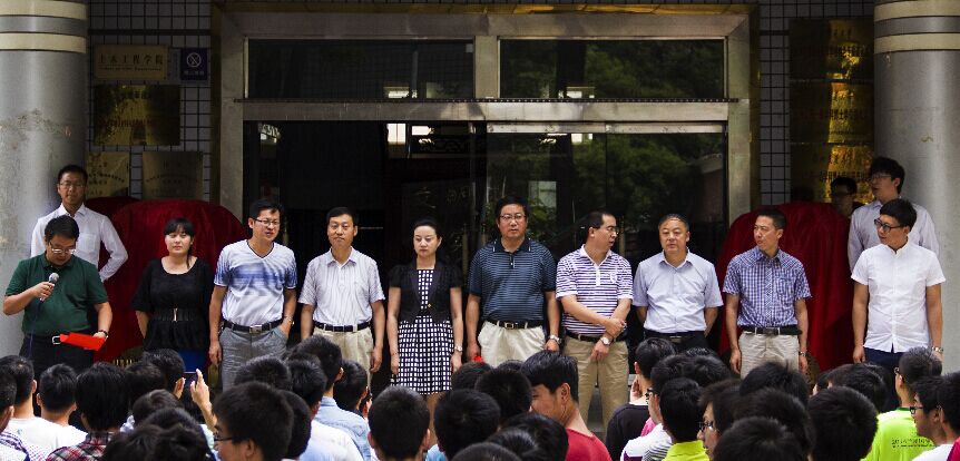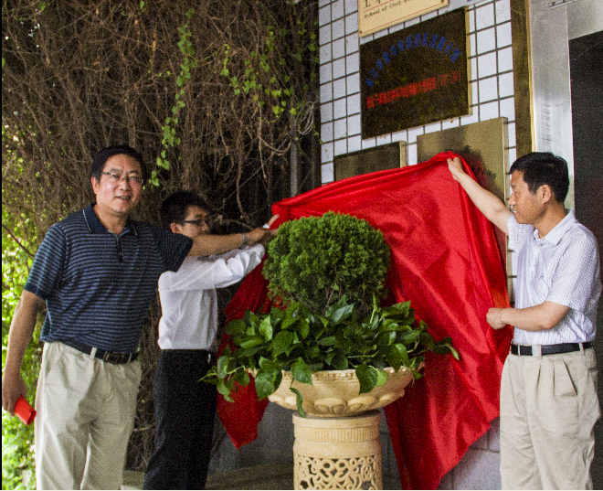 校学生处、对外联络合作处和土木工程学院领导、毕业生代表共同为毕业纪念花盆和树木揭幕。