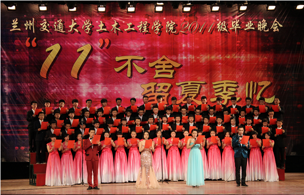 梦想起航,青春散场,五月的交大处处弥漫着离别的气息。2015年5月7日晚8:00,兰州交通大学土木工程学院在学校大礼堂举办了“11不舍,留夏季忆”为主题的2011级毕业生晚会。恰逢我校工程管理专业评估,住建部评估组的专家入校视察,晚会的举办更好的向评估专家们展现了土木学子的人文素养。住建部评估组的专家、教务处、招就处、学生处、校团委的领导以及土木工程学院全体院领导、部分老师、全体毕业生观看了晚会。