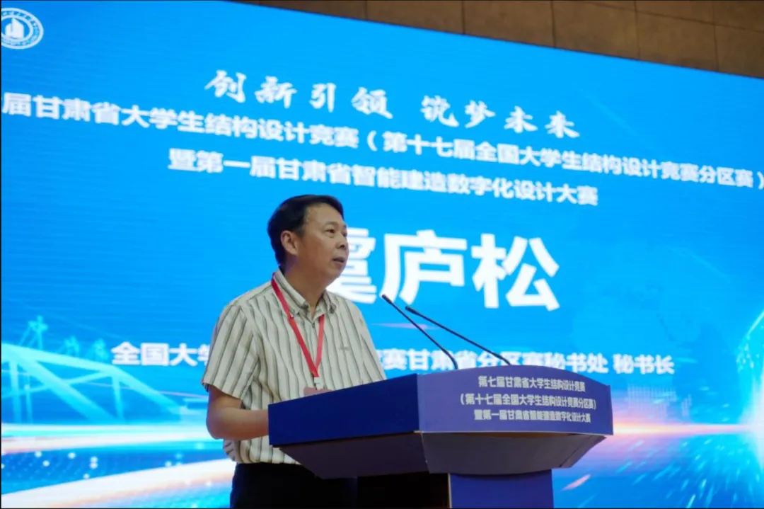 全国大学生结构设计竞赛甘肃省分区赛专家委员会主任、兰州交通大学学科规划与建设处处长蔺鹏臻,全国大学生结构设计竞赛甘肃省分区赛秘书处秘书长、土木工程学院院长虞庐松出席开幕式。虞庐松在致辞中,对辛勤筹备本届赛事的兰州理工大学的领导、老师和志愿者们表示衷心的感谢。他指出全国大学生结构设计竞赛由中国高等教育学会工程教育专业委员会、高等学校土木工程学科专业指导委员会、中国土木工程学会教育工作委员会和教育部科学技术委员会环境与土木水利学部共同举办。目的是为了构建高校工程教育实践平台,进一步培养大学生创新意识、团队协作和工程实践能力,切实提高创新人才培养质量。希望参赛选手遵守竞赛规则、时间安排和组委会的具体要求,以沉重冷静的良好心态参与比赛,团结协作,在快乐的竞赛中展示才华,提升能力,实现团队的预期目标。