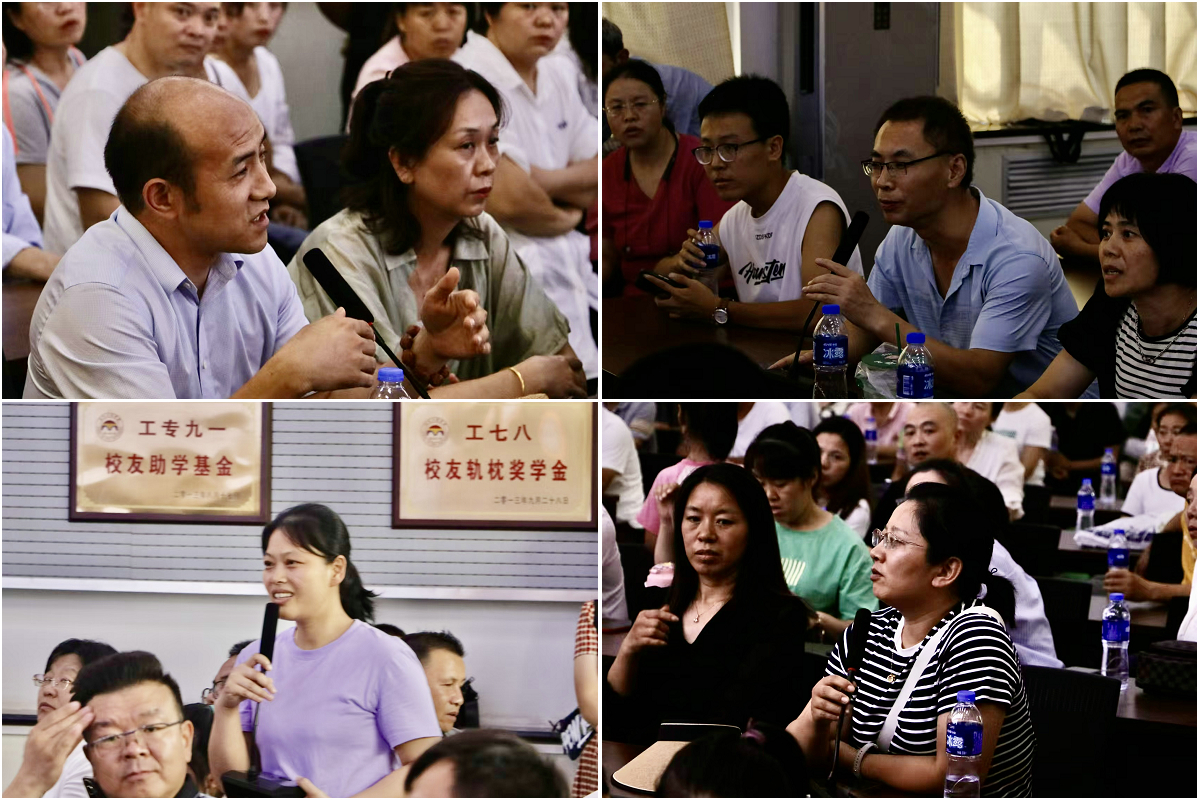 此外,学院还设置了互动交流环节,家长们就关心的学生管理、学风建设、生涯规划、生活保障、入团入党等问题向学院相关职能科室负责人进行提问,得到了详尽而耐心的解答。现场座无虚席,过道也站满了人,气氛热烈而温馨,充分展现了学院对每一位学生的关怀与重视,也体现出家长对学院的期待和寄托。