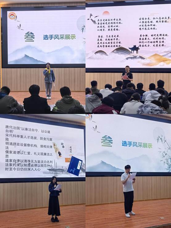 本次朗诵比赛紧密围绕“廉洁”这一主题展开,参赛选手们引经据典,以深厚的文学素养和饱含激情的声音,深刻诠释了廉洁的内涵与价值。本次比赛采用评委打分制,满分10分,其中演讲内容占40%、语言表达占30%、仪容仪表占20%、现场效果占10%。比赛现场,书香与激情交织,每一位参赛选手都以饱满的热情和多元化的形式,表达了自己对廉洁的独到见解。他们或慷慨激昂,或深情款款,充分展示了新一代青年清正廉洁的思想觉悟和崇高追求。