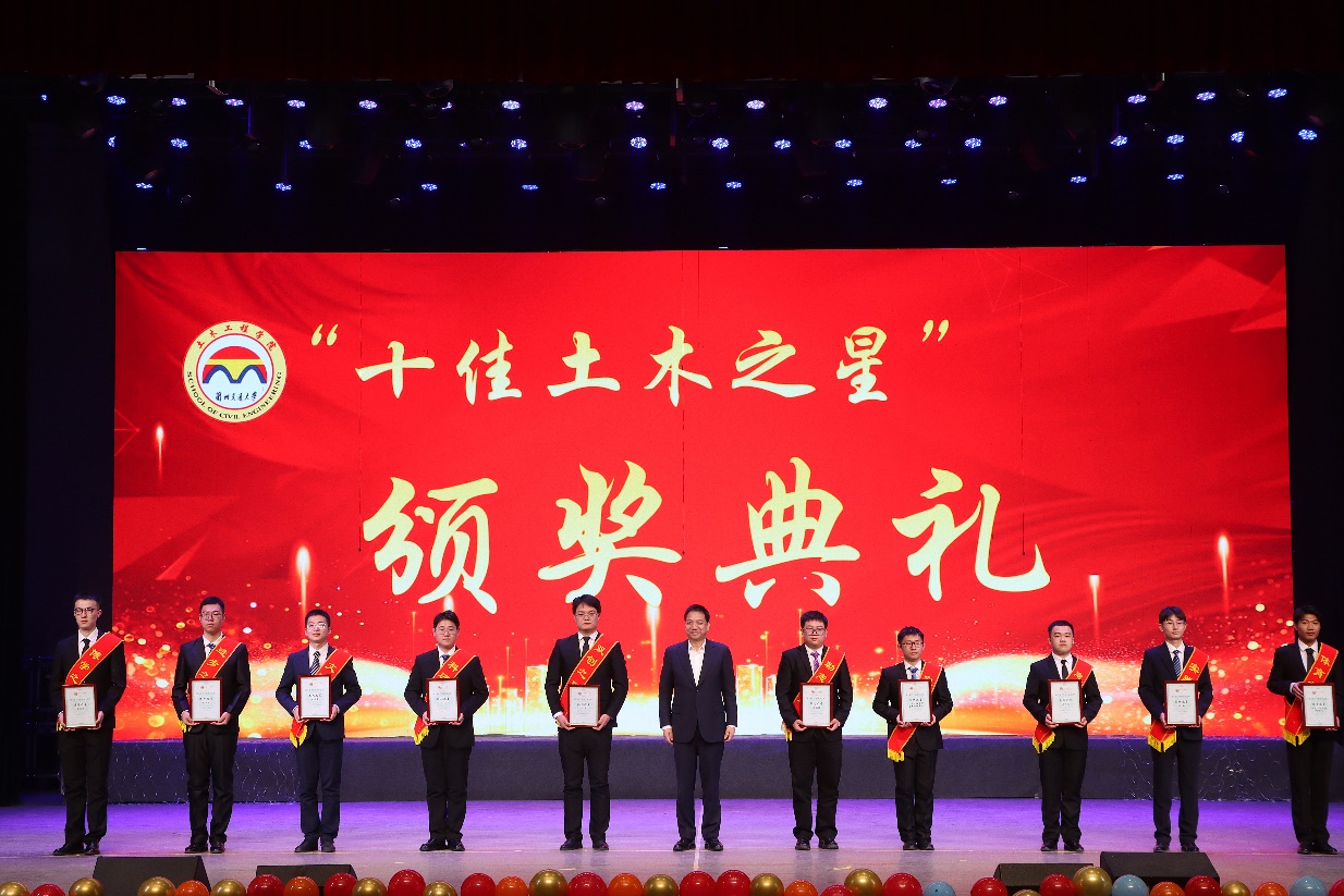 晚会现场还进行了土木工程学院第六届“十佳土木之星”颁奖典礼。我院在“博学、科研、励志、进步、双创、实践、志愿、文艺、体育、宣传”十个方面表现优异的学生依次登台展示,现场播送学院授予每位同学的颁奖词。朱廷珺副校长为获奖同学颁奖,激励着在场的全体2024级学生从身边的榜样中汲取力量,明确个人志向,树立崇高目标,不断提升自身的专业素养与综合能力,努力成长为有理想、有本领、有担当的新时代青年。