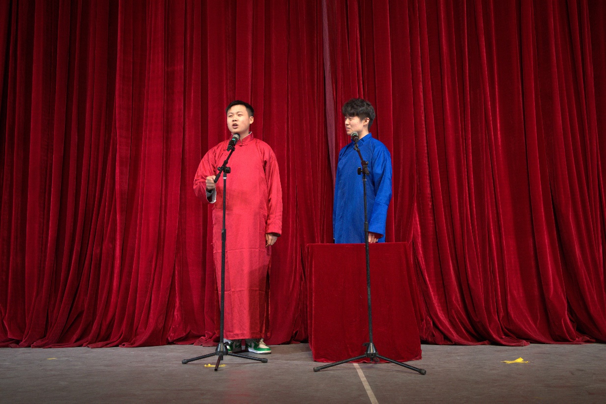 《我们的歌》用温暖的歌声将2024级新生与交大的故事娓娓道来,熟悉的旋律引得全场观众大合唱,台上台下精彩互动,将晚会的温馨氛围渲染到极致。相声演员在《奔跑吧祖宗》中,以幽默风趣的语言和夸张的表演动作逗得观众捧腹大笑,巧妙的包袱设计和默契的配合为晚会增添了许多欢乐元素。