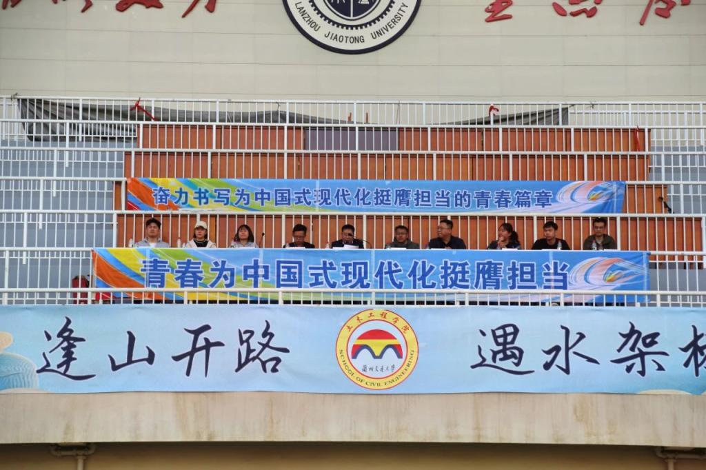 春和景明,浩气盈怀。2025年4月13日,兰州交通大学土木工程学院2025年春季大学生田径运动会在北操场隆重举行。开幕式上,土木工程学院领导班子成员,部分班级企业导师代表,各系室主任,各年级辅导员,2024级本科生班主任应邀出席。学院全体运动员,2024级本科生共计1000余人参加了运动会。开幕式由学院团委书记主持。
