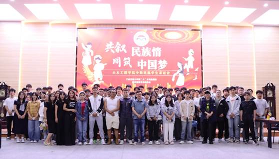 为贯彻落实习近平总书记关于民族团结工作的重要指示精神,铸牢中华民族共同体意识,进一步增强少数民族学生维护民族团结的责任感和使命感,落实学校第二十二个民族团结进步宣传月工作部署。土木工程学院团委于2025年5月22日晚19:30在实验三号楼五楼多功能厅成功举办"共叙民族情,同筑中国梦"少数民族学生茶话会。土木工程学院团委负责人,各团学组织负责人,学院各年级少数民族同学代表共计150余人参加活动。