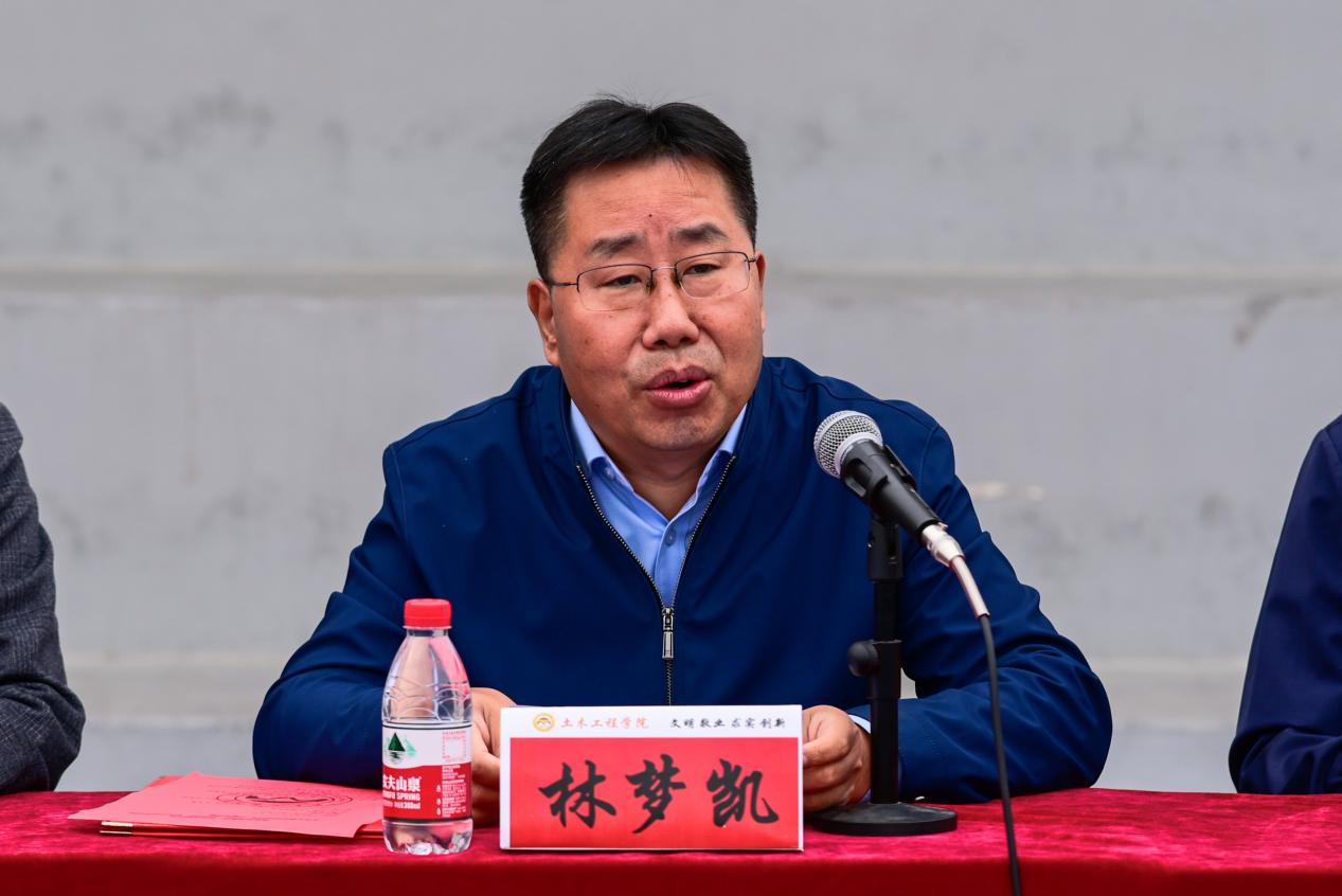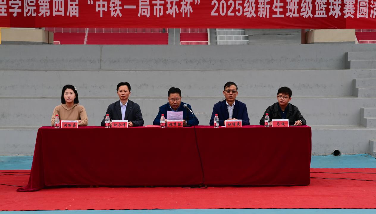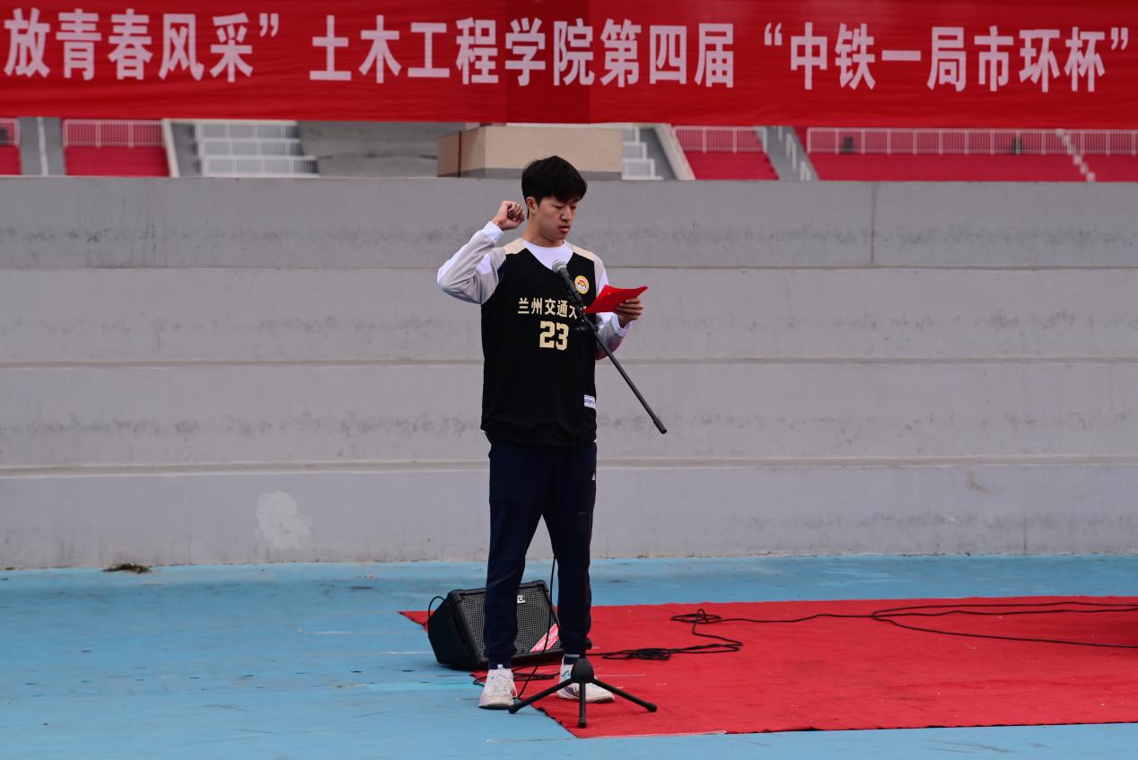 学院党委副书记、副院长林梦凯代表学院向出席开幕式的中铁一局的各位领导、各位运动员和裁判员表示热烈的欢迎!对本次中铁一局市政环保工程有限公司的大力赞助表示感谢。他指出,土木学院始终坚持“文明其精神,必先野蛮其体魄”的理念,通过院运会、迎新系列赛事、拔河争霸赛等品牌活动全面推进素质教育,连续多年校运会领跑全校,彰显“土木铁军”拼搏精神。本次篮球赛正是延续体育育人传统、深化校企联动的重要载体。并要求全体运动员以“更高、更快、更强”的奥运精神为指引,在奔跑中释放激情、在对抗中磨练意志,赛出青春本色、团队凝聚力和土木精气神,传递学子“敢打敢拼、善作善成”的卓越品质。