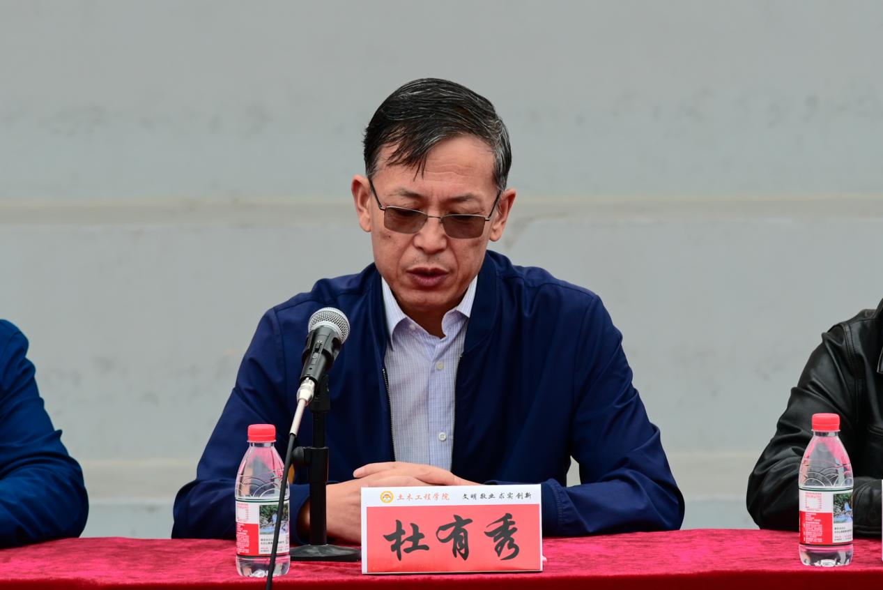 中铁一局市政环保工程有限公司总工程师杜有秀则对本次赛事的成功举办表示热烈祝贺,并在致辞中表示,长期以来,中铁一局市政环保公司与兰州交通大学始终保持深厚合作关系,土木学院为企业输送了大量专业扎实、实践能力强、富有奋斗精神的优秀人才。中铁一局公司也为入职毕业生量身定制“导师带徒”“轮岗实训”等培养机制,助力其在重大工程项目中积累实战经验、快速成长。他希望通过篮球赛这类校园活动进一步加强校企联动,提高土木学子对中铁一局的了解。呼吁全体参赛同学弘扬体育精神,严守赛事规则,尊重裁判、对手及工作人员,在竞技中赛出水平、赛出风格、赛出佳绩。