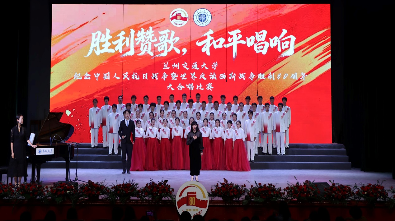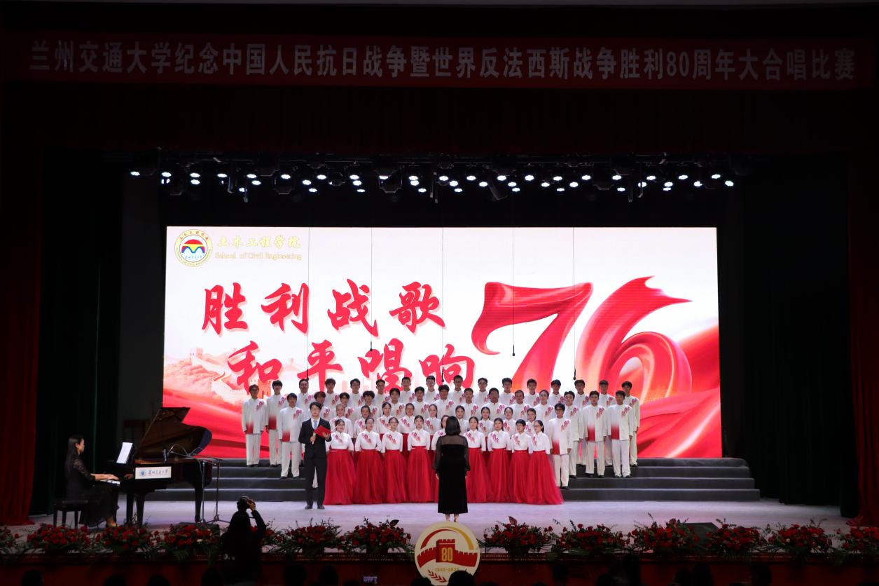 时值中国人民抗日战争暨世界反法西斯战争胜利80周年的重要历史时刻,为铭记抗战历史,弘扬伟大抗战精神、反法西斯精神与爱国主义情怀,提升师生艺术素养与团队凝聚力,展现新时代交大人昂扬向上的精神风貌,9月27日,兰州交通大学于大礼堂成功举办“胜利赞歌,和平唱响”纪念中国人民抗日战争暨世界反法西斯战争胜利80周年合唱比赛。这场承载着特殊历史意义的文化艺术活动,吸引了全校师生的广泛关注。在比赛中,土木工程学院学子表现优异,他们所带来的《天耀中华》与《众人划桨开大船》从21支参赛队伍中脱颖而出,荣获了三等奖的好成绩。