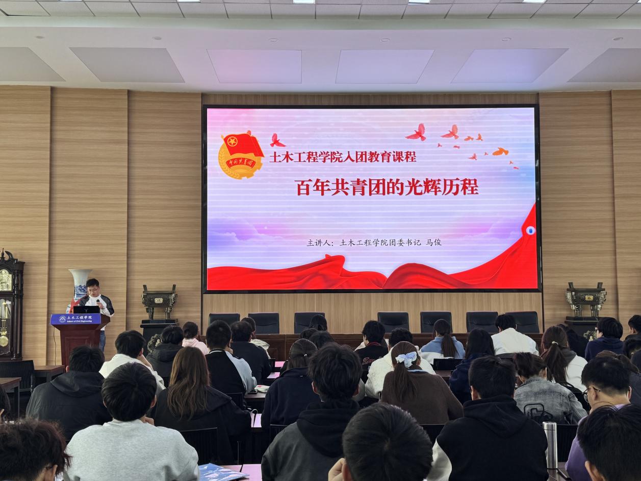 为深入弘扬伟大抗战精神,厚植青少年学生爱团爱党爱国爱社会主义情怀,进一步统一思想凝聚力量,切实提高入团积极分子的思想觉悟和政治素养,筑牢团员发展“质量线”,土木工程学院团委于2025年下半年系统策划并开展了系列团课培训,构建起从理论到实践、从思想引领到使命担当的全面培养体系。10月14日,学院入团教育系列培训最后一讲由团委书记马俊老师以“高举团旗跟党走——百年共青团的光辉历程”为题,开展第八次团课培训。