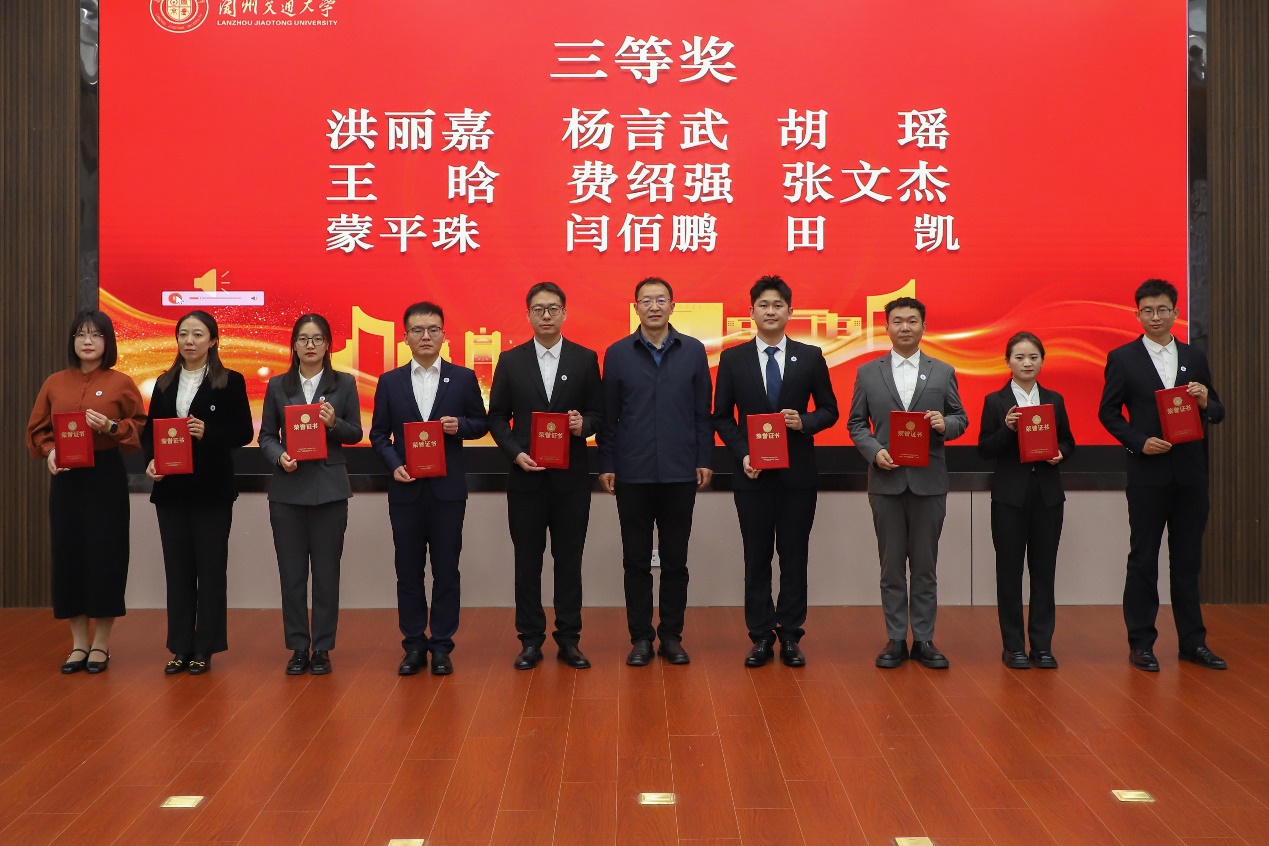 近日,兰州交通大学2025年学工队伍素质能力提升骨干训练营暨辅导员素质能力大赛圆满落幕。我院辅导员凭借其在基础知识测试与学情分析、案例研讨和谈心谈话三个环节的优异表现,在全校18位优秀选手中脱颖而出,4位选手获奖:学院团委书记马俊荣获大赛一等奖,学生工作办公室主任胡渊荣获大赛二等奖,辅导员田凯、洪丽嘉荣获大赛三等奖,学院荣获“优秀组织奖”,充分体现了我院辅导员队伍在育人实践中的深耕细作与理论沉淀。