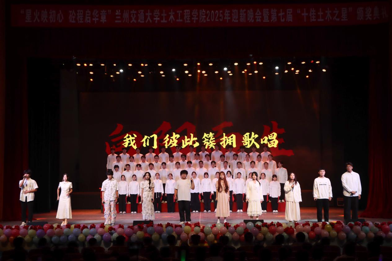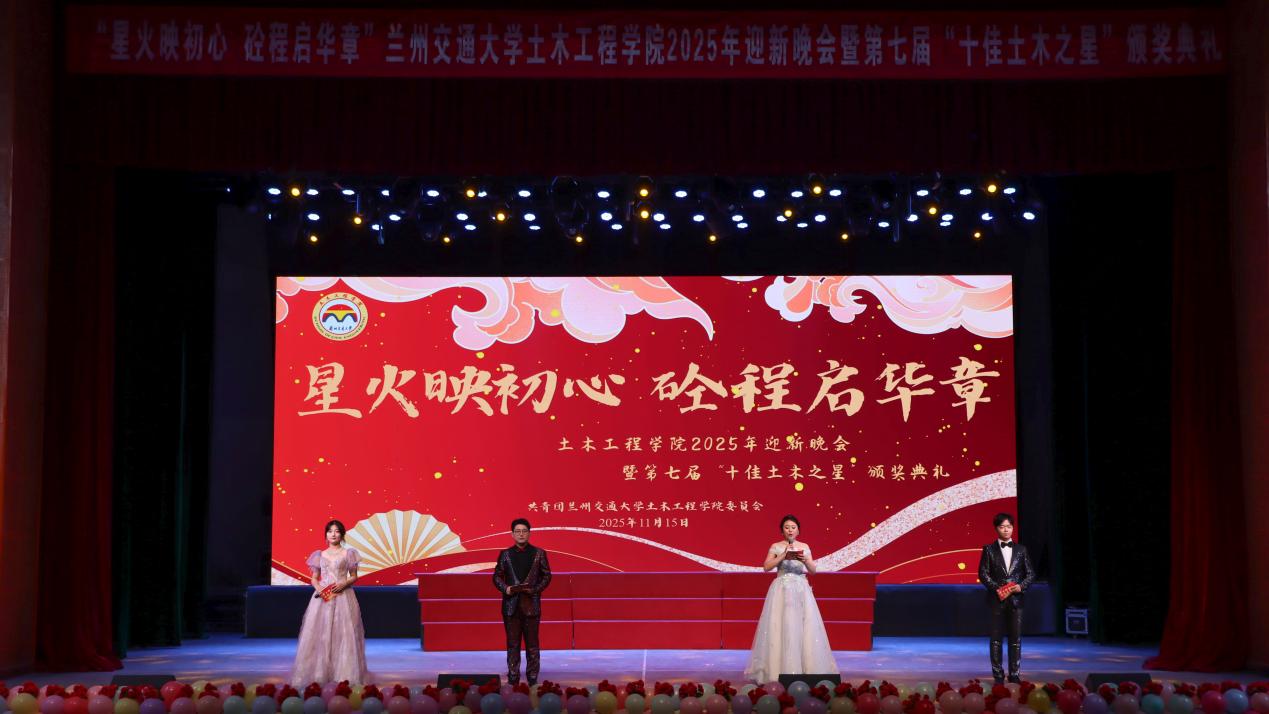 初心如磐,不忘来时路;使命在肩,奋进显担当。11月15日晚,兰州交通大学土木工程学院2025年迎新晚会暨第七届“十佳土木之星”颁奖典礼在学校大礼堂隆重举行。土木工程学院相关领导、学校相关职能部门负责人、部分系室主任、班主任和1000余名2025级本科生、研究生欢聚一堂,共同见证这场彰显时代青年使命与活力的青春盛会。