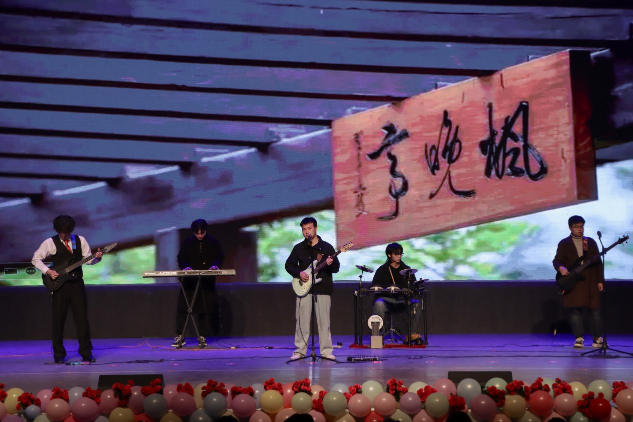第三篇章“经纬・筑梦”延续精彩。西北师范大学戏剧团带来的《秦腔联唱》,以豪迈唱腔与独特韵味展现传统戏曲魅力,赢得满堂喝彩。相声《笑说三字经》以幽默语言重新诠释经典,巧妙设计令观众笑声不断,为晚会增添别样文化趣味。乐队表演《曾经的你》以激情演奏唤醒青春记忆,热血歌声点燃全场氛围。