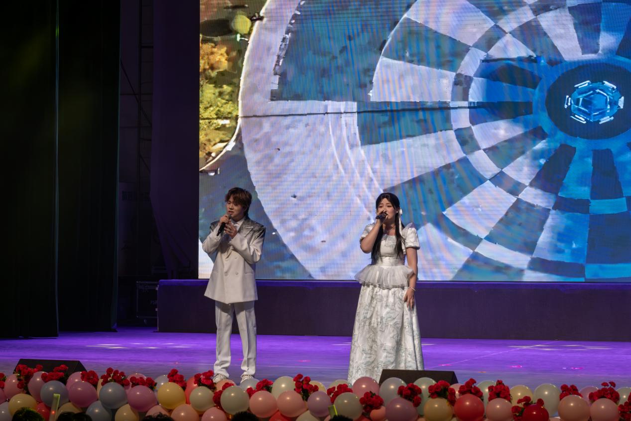 第一篇章“砼心•序章”在2025级新生合唱队《天耀中华》《众人划桨开大船》的嘹亮歌声中拉开帷幕。激昂的旋律传递出学子对祖国的深情与团结奋进的决心,瞬间点燃全场热情。随后,歌曲《如果可以》以温柔旋律诉说青春心事,将现场带入温馨氛围;活力舞蹈《What is love》以俏皮舞步与动感节奏展现青春朝气,引来阵阵掌声。