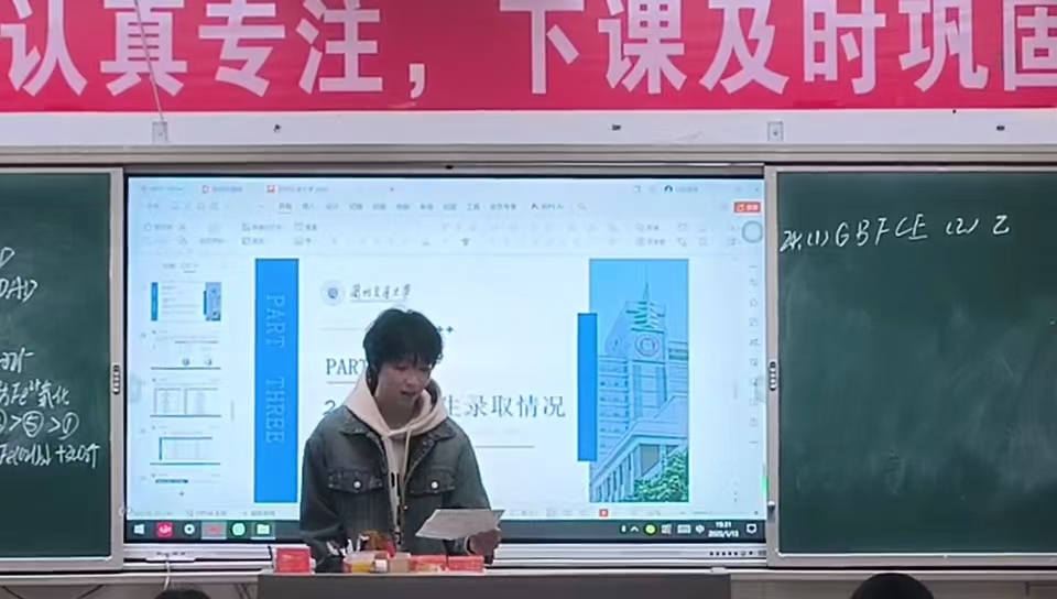重返高中母校宣讲大学,意义非凡。这代表着高中学校一代又一代的传承,也代表着大学的未来。宣讲时,我分享了大学生活的精彩瞬间,从丰富多样的社团活动,到紧张充实的学术探索。当讲解专业设置和招生政策时,他们专注的神情、踊跃的提问,让我深感责任重大。这次宣讲,不仅让我锻炼了表达能力,更让我收获了一份传承的力量。我也深刻体会到,每一次交流都是一颗希望的种子,愿这些种子在他们心中生根发芽,激励他们勇敢追逐梦想,奔赴属于自己的大学时光。